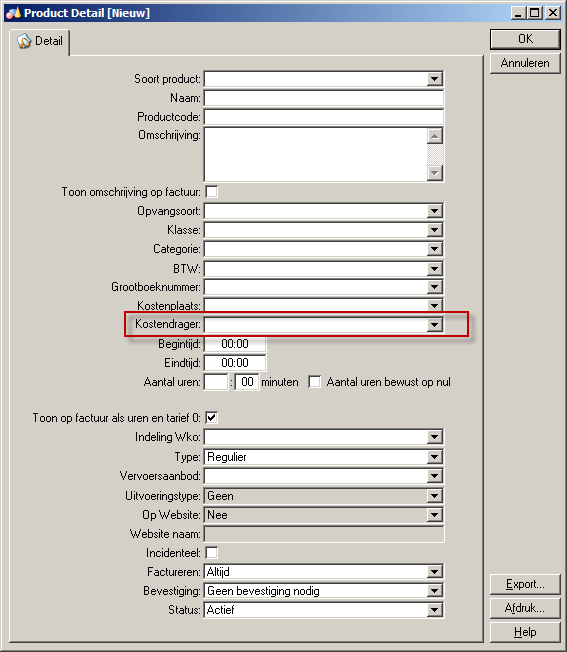 Vanaf versie 3.2.11 is het mogelijk om de kostendrager vast te leggen in de productdefinitie.