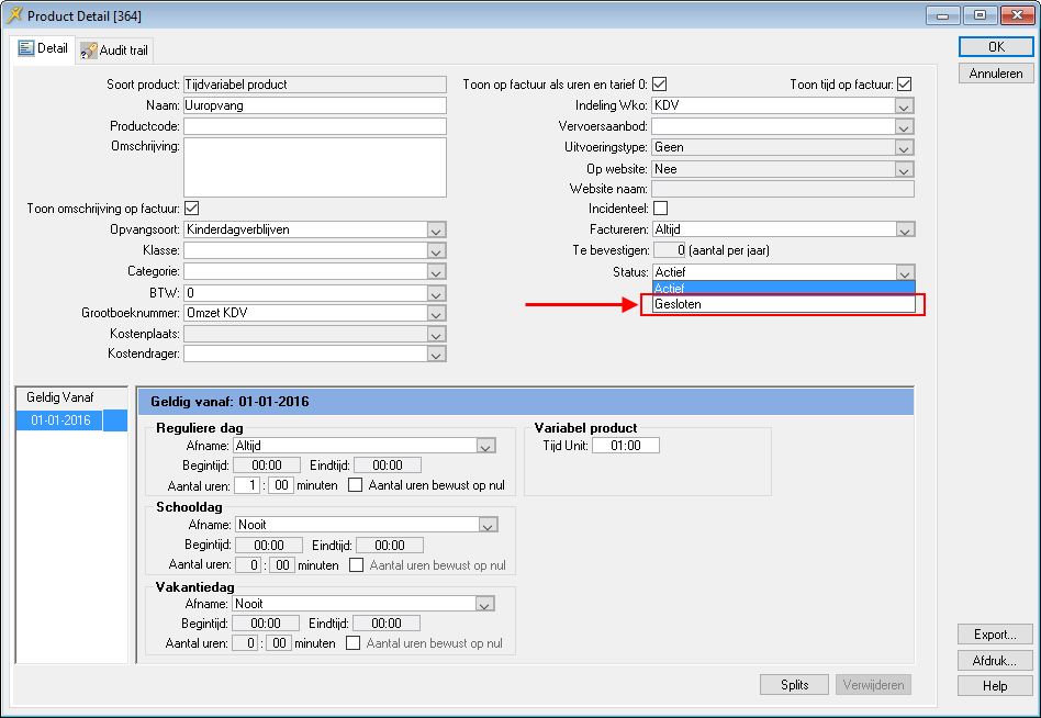 NB: Nadat u het product hebt gesloten, moet het ook uit de groepsperiode worden verwijderd! Zie Groepsperiode aanpassen.
