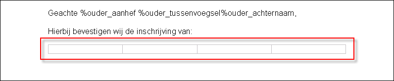 Voor veel situaties is het bijzonder handig om in een documentsjabloon gebruik te maken van een tabel. Bijvoorbeeld wanneer u een sjabloon maakt dat als document aan ouders moet worden gestuurd waarin gegevens van meerdere kinderen moeten worden getoond. Ook bij het maken van een plaatsingsovereenkomst maakt u gebruik van tabellen. Wanneer u in een documentsjabloon tabs toevoegt is het mogelijk dat bij het maken van het document op basis van dit sjabloon, de tabs verspringen. Door gebruik te maken van tabellen voorkomt u dit.