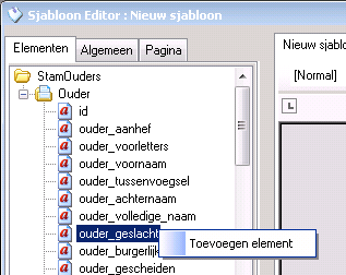 Klik in de tabel en voeg vervolgens het veld %geslacht_ouder in uit de lijst met elementen: