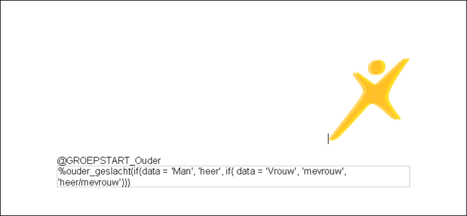 In deze procedure wordt beschreven hoe u in een document de aanhef van ouders kunt afdwingen door middel van het toevoegen van een Standaardexpressie op het veld %Geslacht.