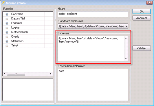 (*) Om een (standaard) expressie aan te passen zie Expressies of standaardexpressies aanpassen of verwijderen.