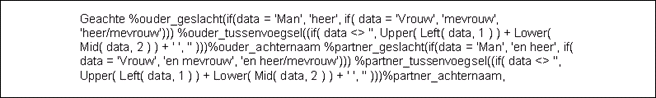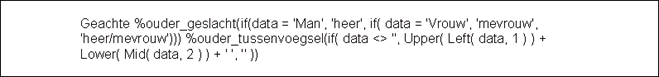 Om een expressie op het veld %ouder_tussenvoegsel te zetten gaat u als volgt te werk: