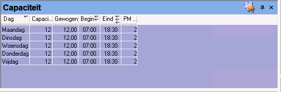 Capaciteit invoeren voor meerdere weekdagen tegelijk