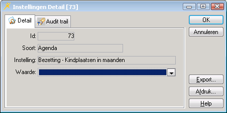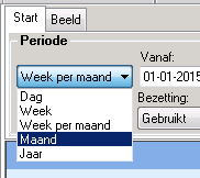 De bezetting wordt dan in maandcijfers getoond. Om ervoor te zorgen dat het keuzelijstveld Periode standaard de waarde Maand is geselecteerd kunt u de parameter Bezetting – Kindplaatsen in Maanden instellen op Ja.