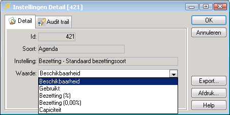 U kunt bij de applicatie-instelling Bezetting - Standaard bezettingsoort kiezen uit de volgende waarden: