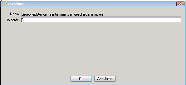 Het aantal maanden dat de leidster terug kan kijken in de tijd kan worden ingesteld. In bovenstaand voorbeeld is de parameter ingesteld op 9 maanden.