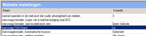Wanneer u gebruik wil maken van TSO direct dient dit vast gelegd te worden in de database van Flexkids.