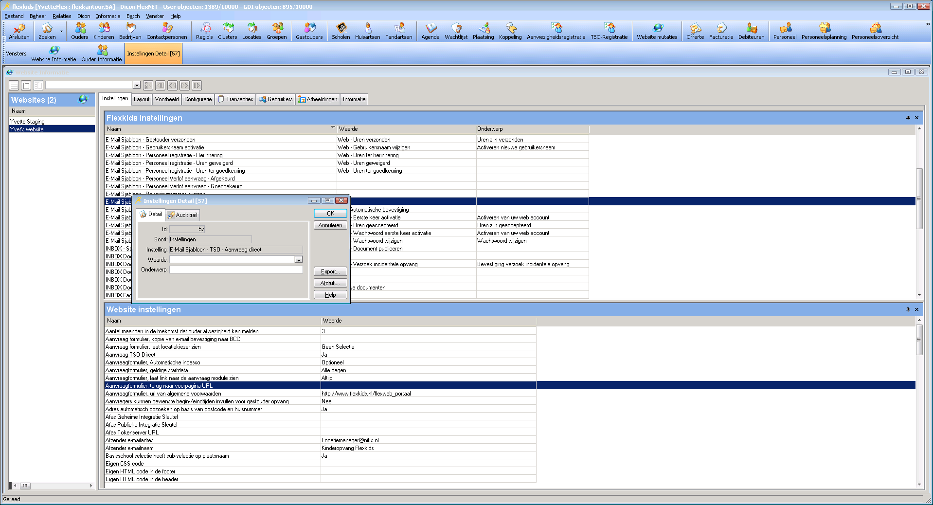 Om ervoor te zorgen dat het juiste sjabloon gebruikt wordt in de communicatie richting de ouder, dient dit vast gelegd te worden bij de Flexkids instellingen.