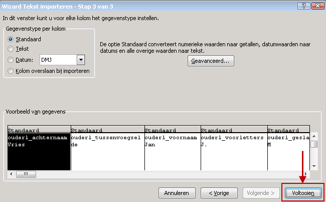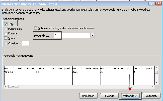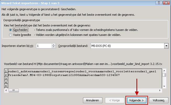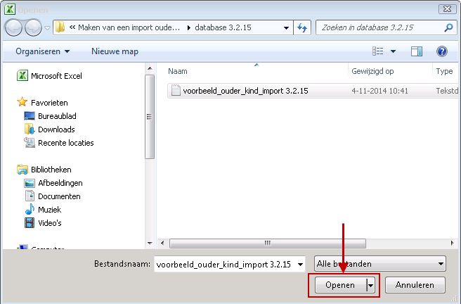 Het bestand wat op uw lokale computer is opgeslagen is een .txt bestand. Het werken in dit bestand is minder overzichtelijk. Daarom wordt dit bestand omgezet in een Excel bestand met kolommen.