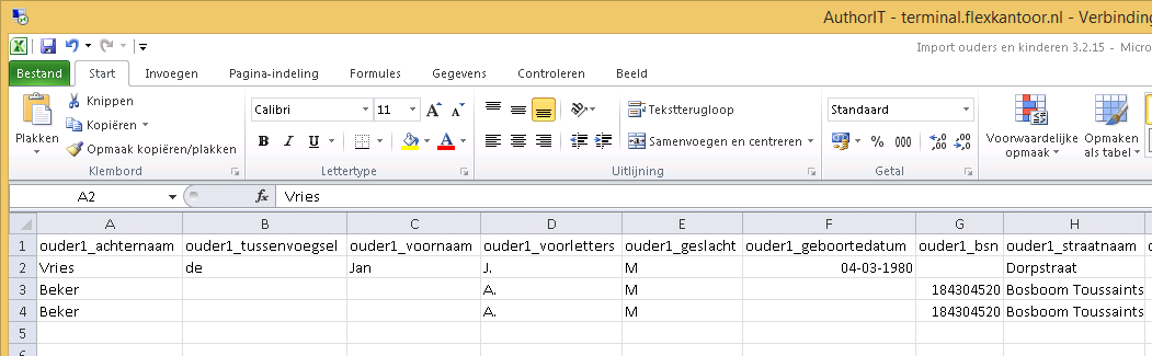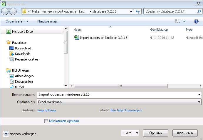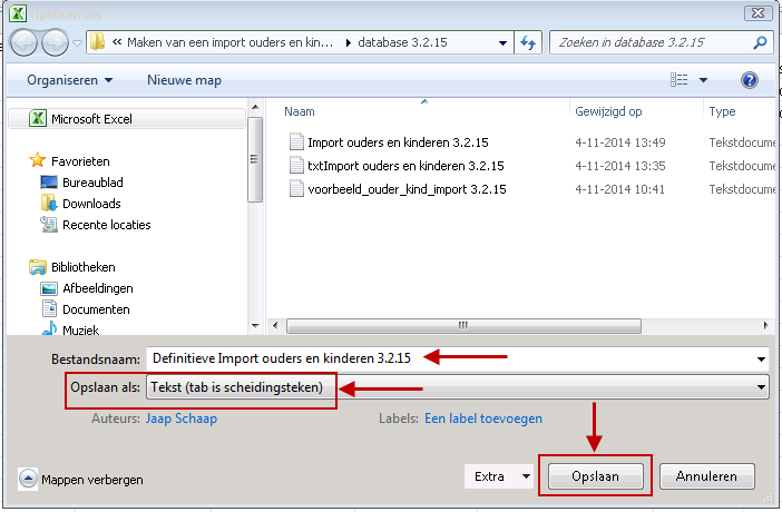 u hebt alle gegevens in het importbestand ingevoerd en het bestand opgeslagen. U gaat dit bestand nu omzetten naar een .txt bestand zodat u dit eenvoudig kunt importeren in Flexkids.