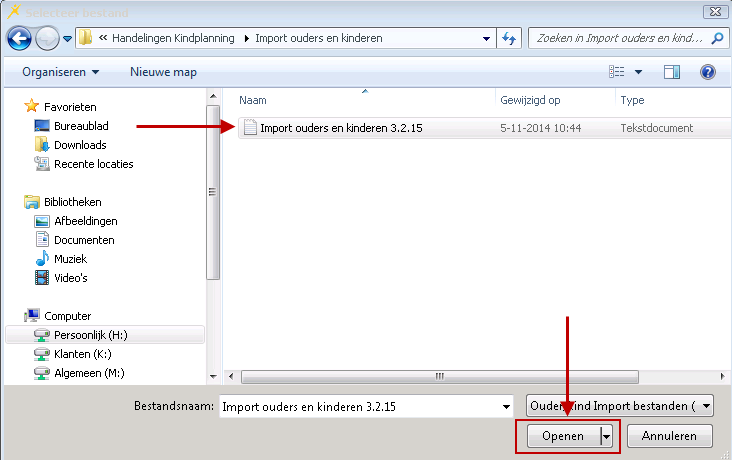 Relaties > Importeren > Ouders / Kinderen