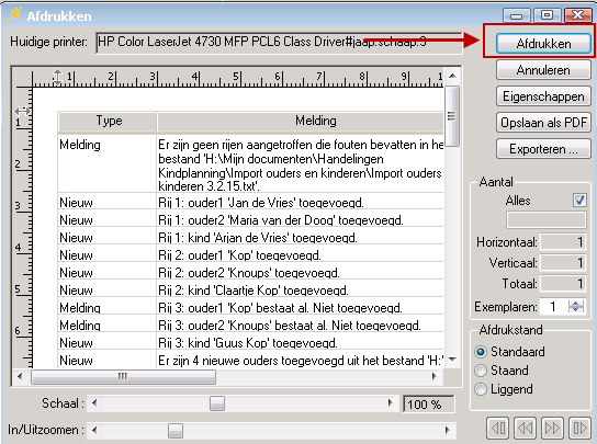 Kies Afdrukken… als u het Importverslag wilt afdrukken. U ziet het venster Afdrukken.