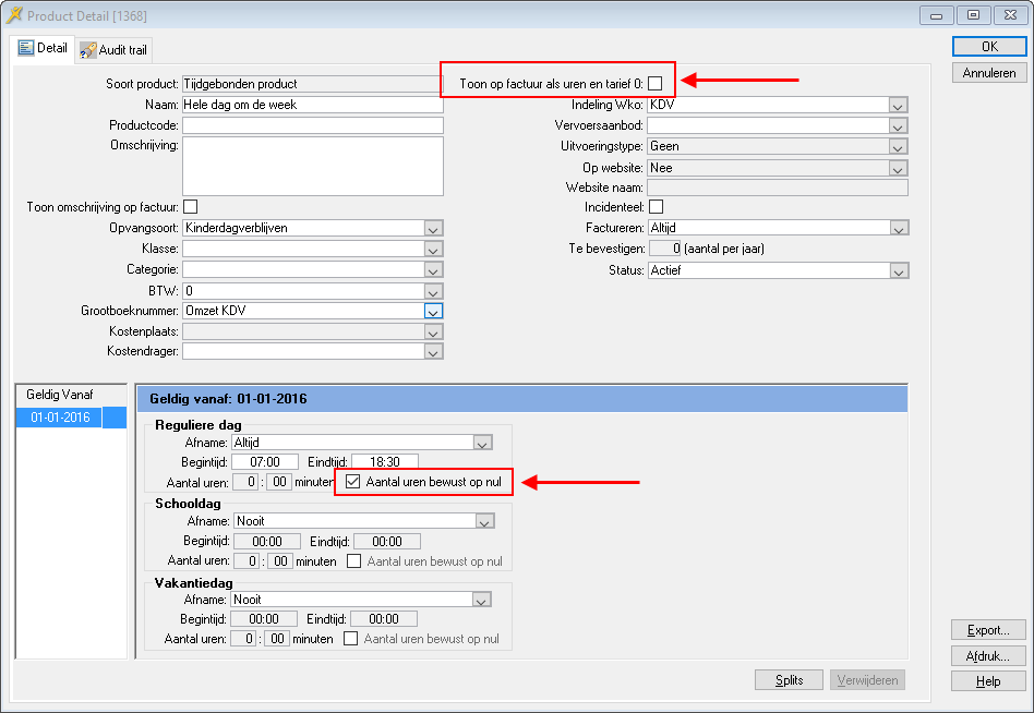 LET OP: vanaf versie v3.2.16 kunt u deze producten alleen nog op deze wijze inrichten als u de producten het hele jaaraanbiedt!