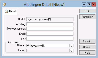 Relaties>Bedrijven> eigen bedrijfsgegevens> tabblad Afdelingen