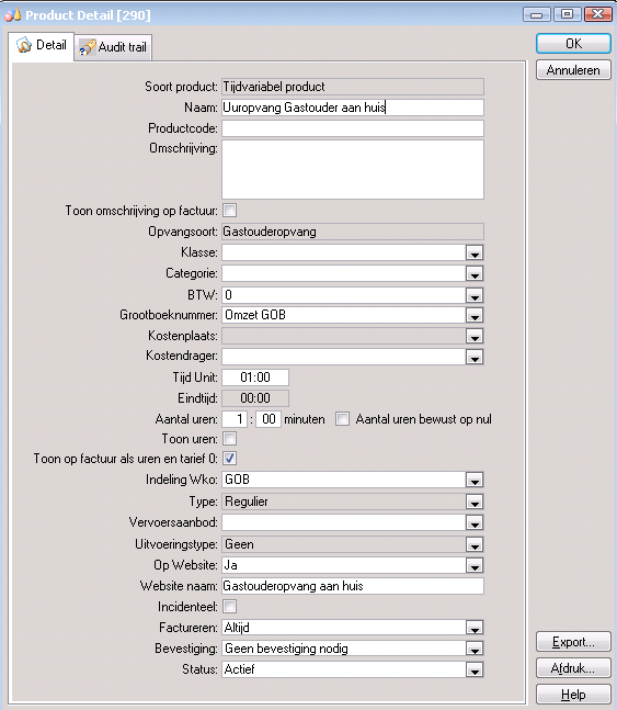 Een product voor Opvangkosten is altijd een Tijdvariabel product. |