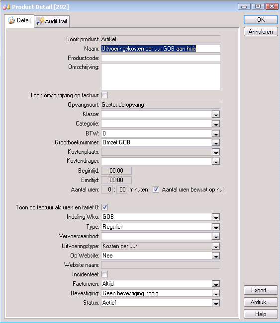 Een product voor Uitvoeringskosten is altijd een Artikel. |