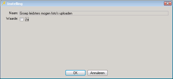 De PM'ers kunnen via het groepsportaal foto's toevoegen aan een activeit. Om foto's te kunnen uploaden dient de instelling Groep leidsters mogen foto's uploaden op Ja te staan.