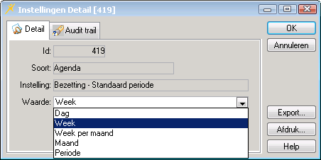 Met de instelling van deze parameter bepaalt u welke standaardperiode u ziet wanneer u het tabblad Bezetting van de groepsagenda of het agenda-informatiescherm wilt gebruiken.