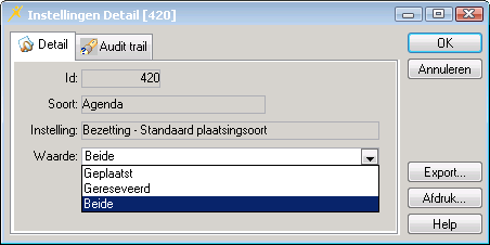 Met de instelling van deze parameter bepaalt u welke soort plaatsingen u wilt zien wanneer u het tabblad Bezetting van de groepsagenda of in Agenda Informatie wilt gebruiken. Voor nieuwe klanten staat deze instelling standaard op Beide ingesteld.