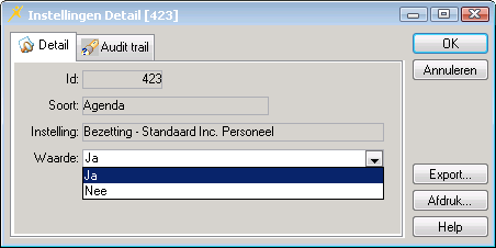 Indien de parameter van deze instelling op Ja staat en u op het tabblad Beeld van een bezettingsoverzicht in het agenda informatiescherm gekozen heeft voor Ingepland of Benodigd Personeel dan zal standaard het ingeplande of benodigde personeel in het bezettingsoverzicht getoond worden.
