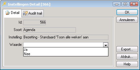Beheer > Systeembeheer > Instellingen > (tab)Agenda