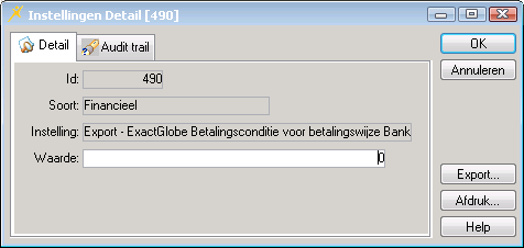Met de instelling van deze parameter legt u vast of bij de export van facturen de betalingsconditie voor het boekhoudpakket ExactGlobe geëxporteerd moet worden. Laat u dit veld leeg bij gebruik van het het boekhoudpakket ExactGlobe dan wordt de betalingsconditie niet geëxporteerd.