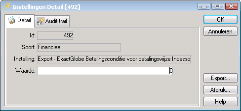 Met de instelling van deze parameter legt u vast of bij de export van facturen de betalingsconditie voor het boekhoudpakket ExactGlobe geëxporteerd moet worden. Laat u dit veld leeg bij gebruik van het het boekhoudpakket ExactGlobe dan wordt de betalingsconditie niet geëxporteerd.