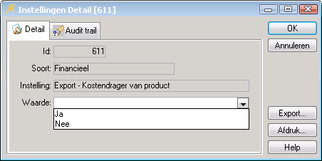 Met de instelling van deze parameter wordt in het exportbestand de kostendrager van producten geëxporteerd.