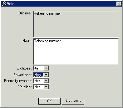 Open Mijn Bankgegevens in de sectie Formulieren en dubbelklik op het onderdeel Rekeningnummer. Zet het veld Bewerkbaar op Nee: