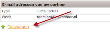 In de sectie E-mailadressen van uw partner van de webpagina Mijn Partner is de knop Toevoegen toegevoegd: