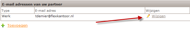 In de sectie E-mailadressen van uw partner van de webpagina Mijn Partner is de knop Wijzigen toegevoegd: