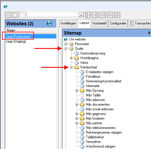 Beheer > FlexWEB > Websites > (lijst) betreffende website > (tab Layout