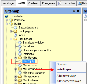 Om de ouder de mogelijkheid te bieden om in het Klantportaal de tijdlijn van zijn kind(eren) te bekijken geeft u het veld Zichtbaar in het onderdeel Mijn Tijdlijn de waarde Ja.