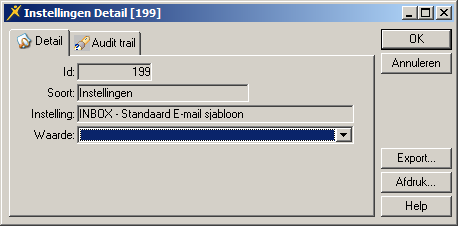 Met de parameter INBOX Document– Standaard BBC adres stelt u het e-mailadres in waar - niet zichtbaar voor de oorspronkelijk geadresseerde - een kopie van het bericht naar toe wordt gestuurd.