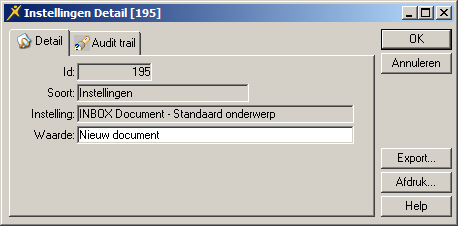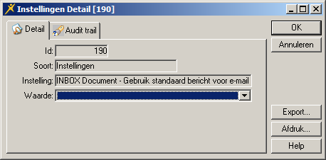 Met de parameter INBOX Document – Standaard onderwerp stelt u het onderwerp in van het inbox- en e-mailbericht.