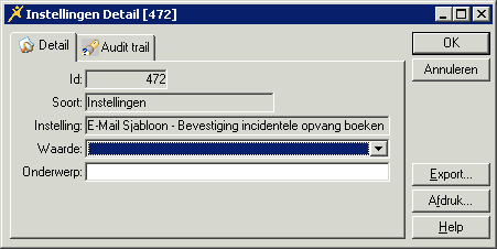 Met de parameter E-mail Sjabloon - Bevestiging incidentele opvang boeken stelt u in welk sjabloon gebruikt wordt voor het inbox- en e-mailbericht dat naar de ouder wordt gestuurd zodra deze een incidentele plaatsing heeft aangemaakt.