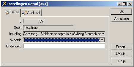 Met de parameter Website mutatie – Sjabloon acceptatie / afwijzing 'Verzoek aanvraag incidentele dag' (type Incidenteel) stelt u in welk sjabloon gebruikt wordt voor het inbox- en e-mailbericht dat naar de ouder wordt gestuurd zodra het desbetreffende mutatieverzoek is afgehandeld.