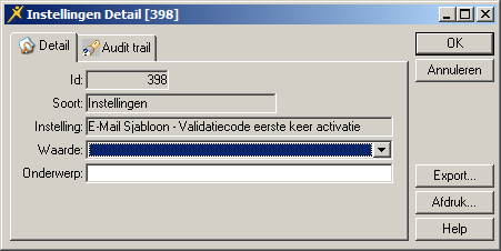 E-mail Sjabloon - Validatiecode eerste keer activatie: