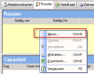 Klik met de RM-knop in het deelvenster Rooster van het tabblad Rooster en kies Nieuw...