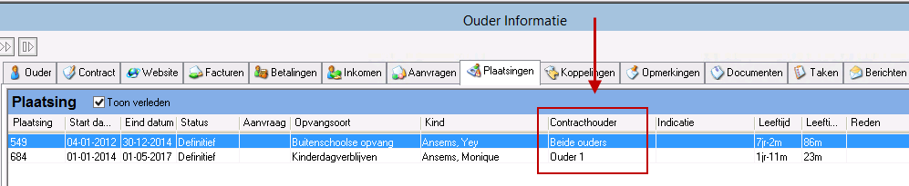 In de plaatsingsregel van de plaatsing van het kind kunt u zien wie de contracthouder is.
