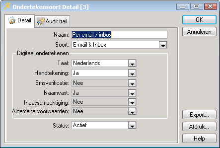 Bent u een bestaande klant dan dientnt u de ondertekensoort Per E-mail / Inbox aan te maken.