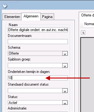 NB: Als bij het veld Onderteken termijn een waarde wordt ingevuld wordt de standaardinstelling bij Beheer>Systeembeheer>Instellingen>tabblad Documenten uitgeschakeld. De statussen kunnen niet meer handmatig aangepast worden. Dit is nu overgenomen door de funcitonaliteit digitaal ondertekenen.