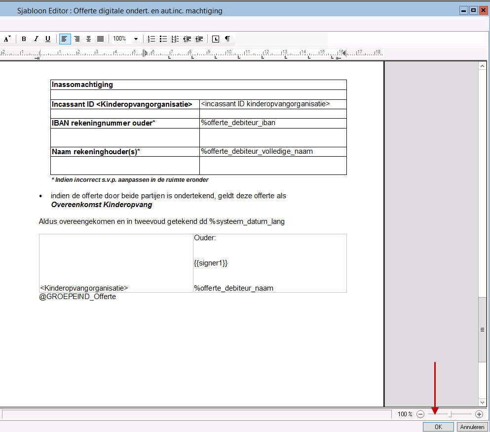 In het documentsjabloon beheer geeft u in het veld de Ondertekentermijn aan (aantal dagen waarbinnen er op het document gereageerd kan worden door de ouder).