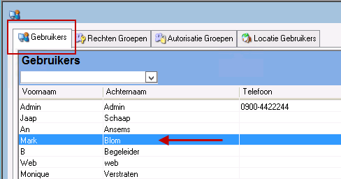 - Selecteer de gebruiker waaraan u de Autorisatie groep wilt toevoegen.
