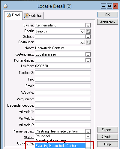 Er wordt een voorbeeld gegeven voor het vastleggen van de Plannersgroep op Locatie niveau.