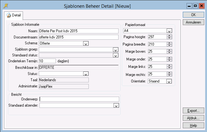 Klik met de RM-knop in het lijstvenster Sjablonen en kies Nieuw… U ziet het volgende venster: