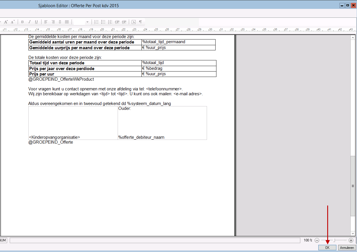 Maak het documentsjabloon zoals u deze voor uw onderneming wilt gebruiken.
