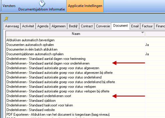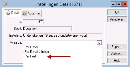 Standaard instellingen ten behoeve van ondertekening Per Post