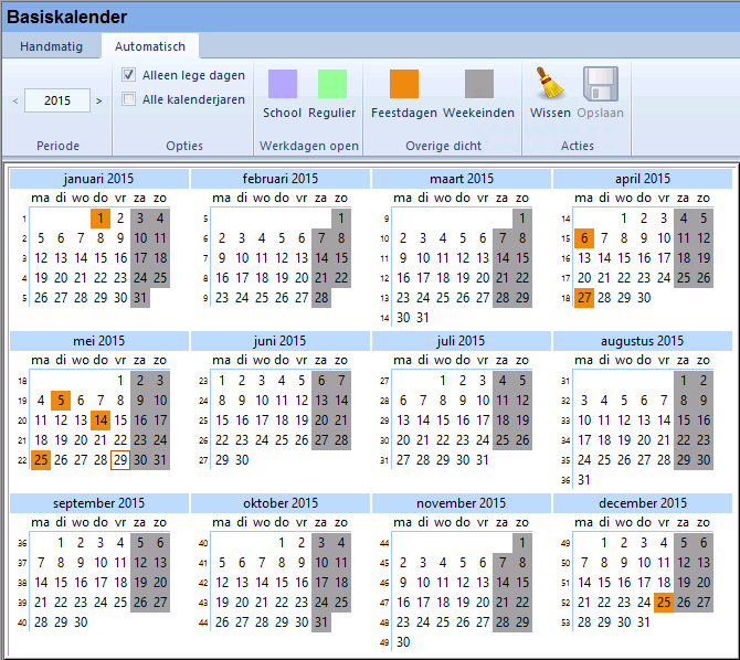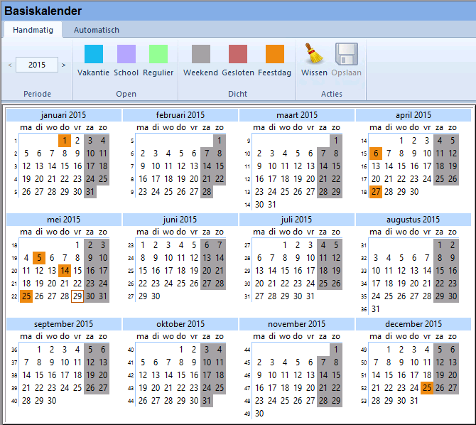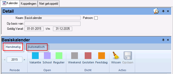 Het tabblad Kalender bestaat uit twee tabbladen: Handmatig en Automatisch.